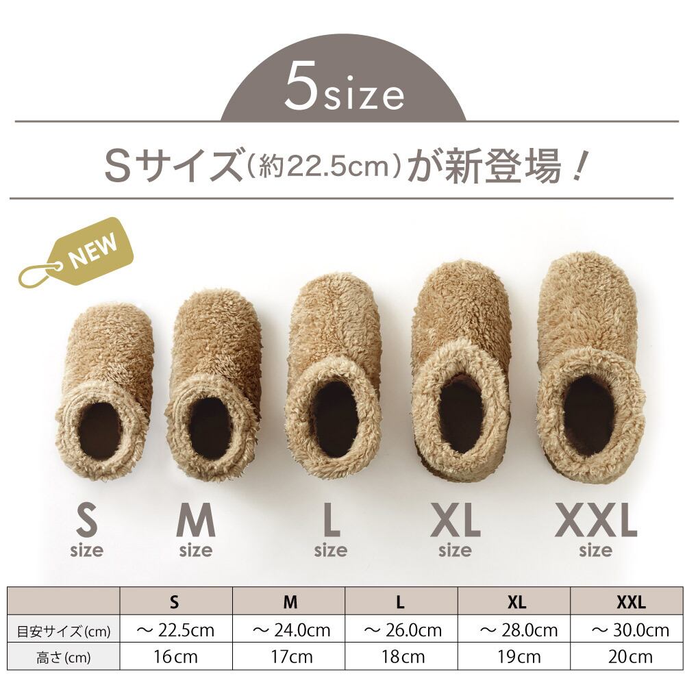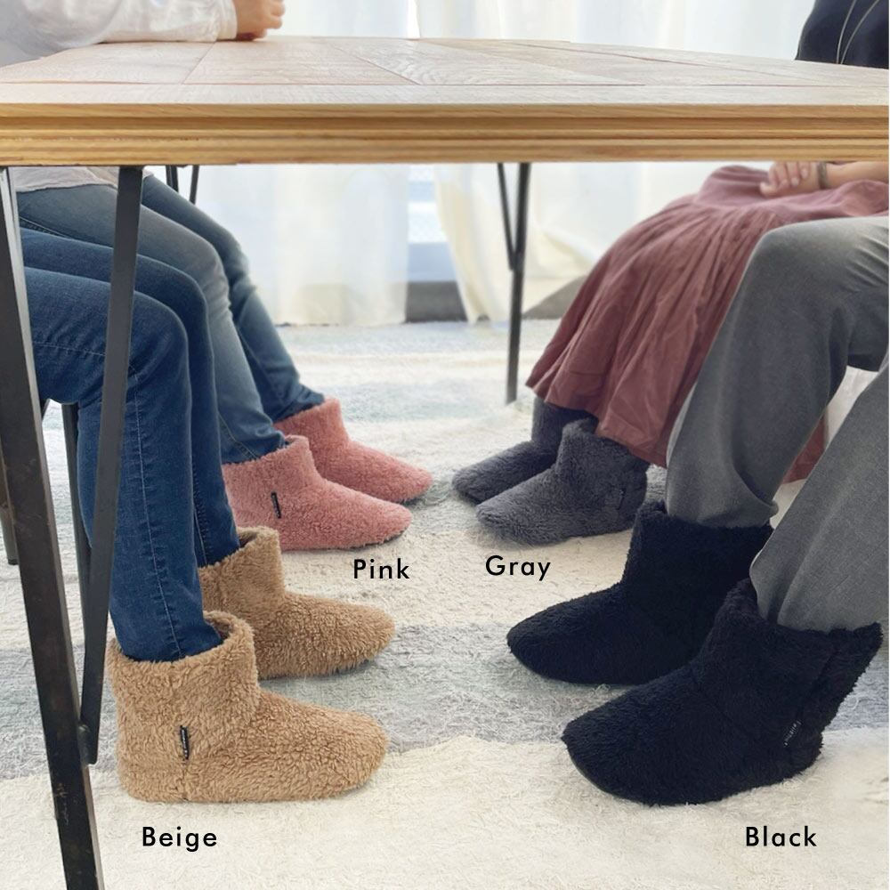 内側も外側も全面総ボア仕様なので、つま先から足首まであったか。ブーツタイプのスリッパなので、足首の冷えもしっかりカバーできます。ソール素材をへたりにくく丈夫な素材に見直したので、床からの冷えが伝わりにくくなりました。